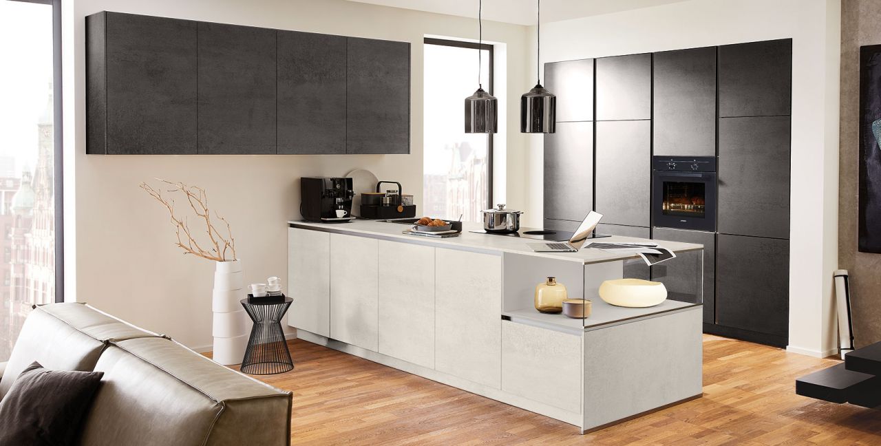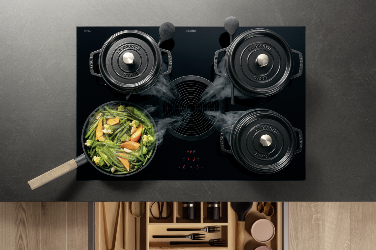 Inklusive Einbaubackofen schwarz Junker JF1300061 Energieeffizienzklasse A, Glaskeramik Kochfeld mit Induktion und Kochfeldabzug (Umluft) Bora GP4U, Kühlschrank Laurus LKG88E Energieeffizienzklasse E, Einbauspüle Edelstahl Rodi BOX LUX 46, XL-Schränken, Unterschrank mit Großraumauszug, Glas-Designwange.