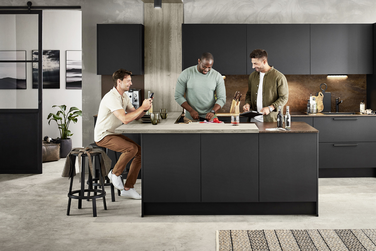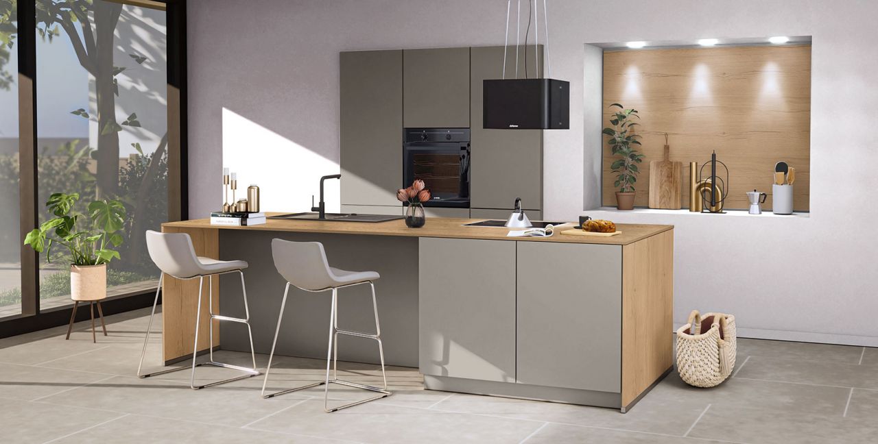 Inklusive Einbaubackofen schwarz Junker JF1300061 Energieeffizienzklasse A, Glaskeramik Kochfeld Junker JR36DT54, Inselesse Edelstahl Airforce F164BK Energieeffizienzklasse A, Kühlschrank Laurus LKG88E Energieeffizienzklasse E, Einbau-Designspüle Elleci Logik 300, Esstheke, XL-Schränken.