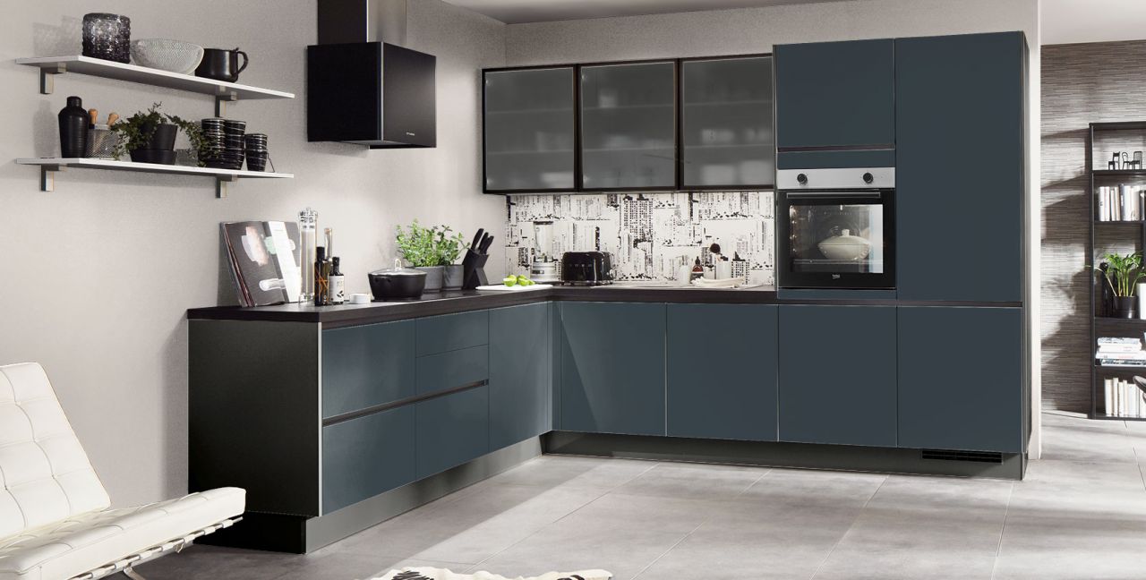 Inklusive Einbaubackofen Edelstahl Beko BBIE110N0X Energieeffizienzklasse A, Glaskeramik Kochfeld Beko EB9741XHL, Dunstesse Edelstahl Faber LITHOS BKL Energieeffizienzklasse B, Kühlschrank mit **** Gefrierfach Beko B1754N Energieeffizienzklasse E, Einbauspüle Edelstahl Rodi Okio Line 85 Deep, Unterschrank mit Großraumauszügen, Wandborden, Wandschränken mit Flat Glastür.