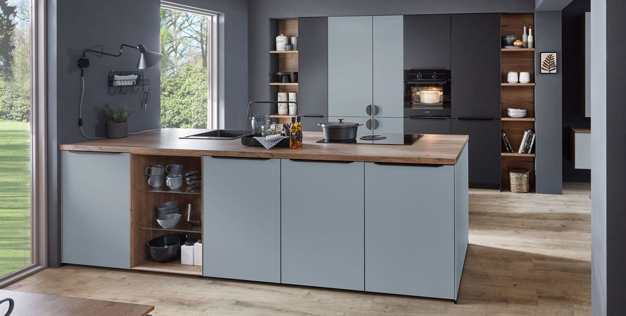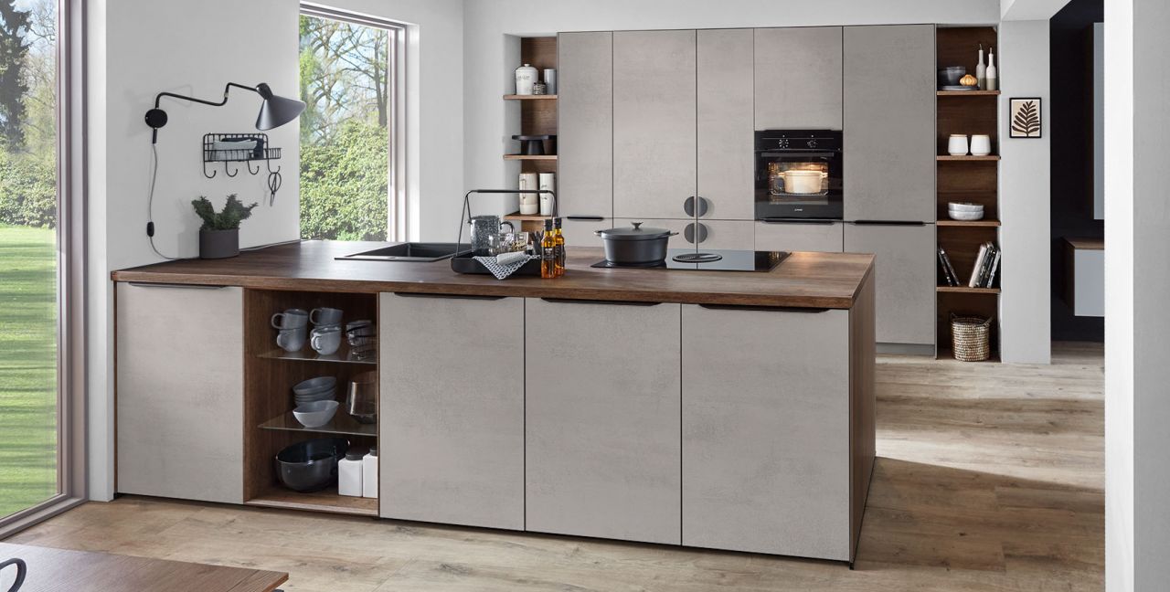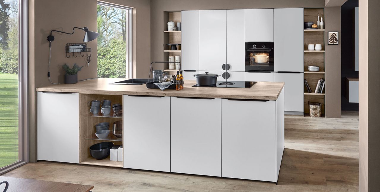 Inklusive Einbaubackofen Laurus LEB10BK Energieeffizienzklasse A, Glaskeramik Kochfeld mit Induktion und Kochfeldabzug (Umluft) Bora GP4U, Kühl- / Gefrierkombination Junker JC87BBSE0 Energieeffizienzklasse E, Einbau-Designspüle Elleci Flat105, XL-Schränken, Unterschrankregal, Wandborden.
